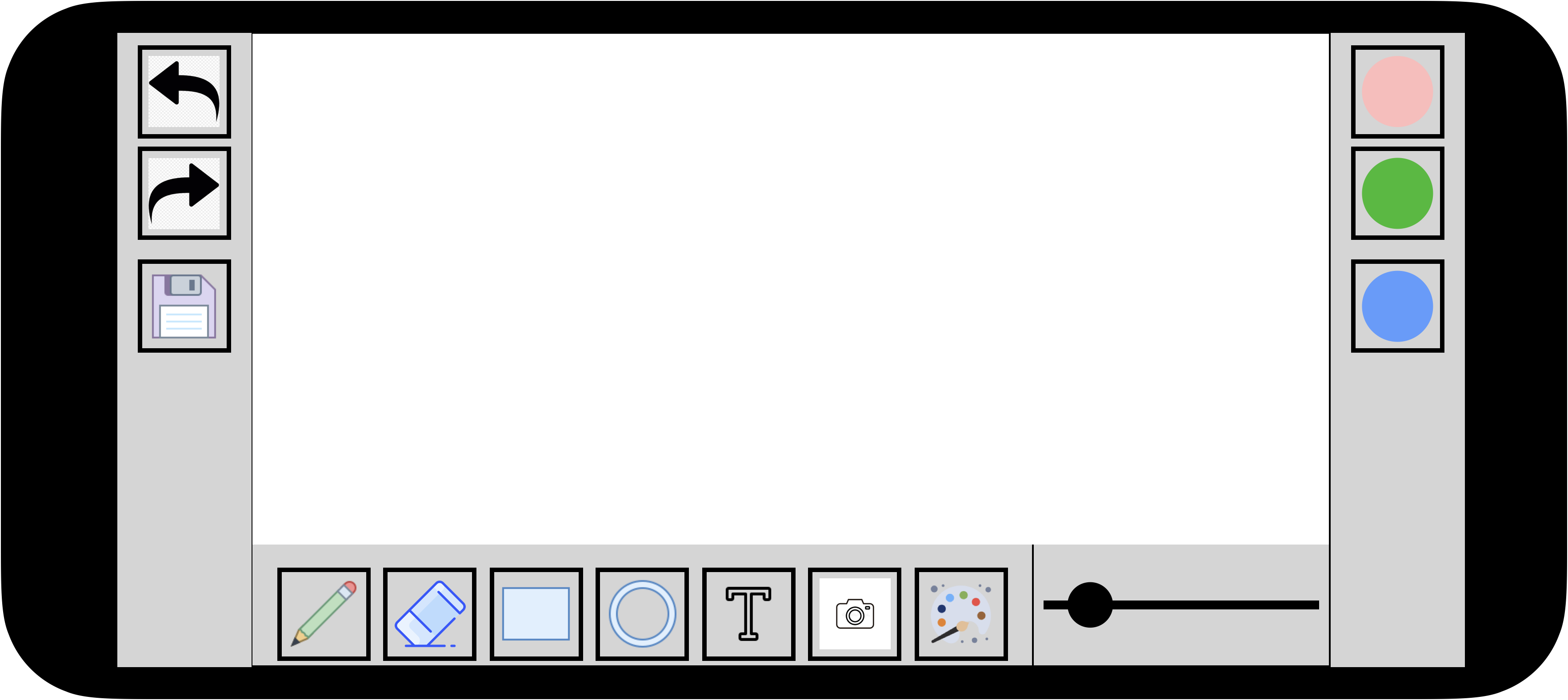 원래 사진 편집 어플리케이션을 제작하려 하다가 안드로이드 앱 개발은 오랜만이라 커스텀 뷰나 이것저것 공부하다보니 그림판 앱을 먼저 만들어 보게 되었습니다. 어떤식으로 만들어 볼까 하다 위와 같이 기본 LandScape 형태의 그림판 앱을 만들어 보고자 했습니다. 기능은 1. Undo, Redo 기능 2. 만든 그림 갤러리에 저장하기 기능 3. 그리기 - 팬 4. 지우개 5. 사각형, 원 그리기 6. 문자 삽입 기능 7. 이미지 불러오기 기능 8. 색상 바꾸기 9. 팬 두께 설정 이렇게 9가지 기능으로 생각했습니다. 꾸준히 조금씩 앱 제작을 진행하여 플레이스토어에 출시까지 성공적으로 잘 되었으면 좋겠습니다. 저의 유튜브에 제가 만들고 있는 그림판 앱의 진행과정을 올리고 있습니다. https://youtu...