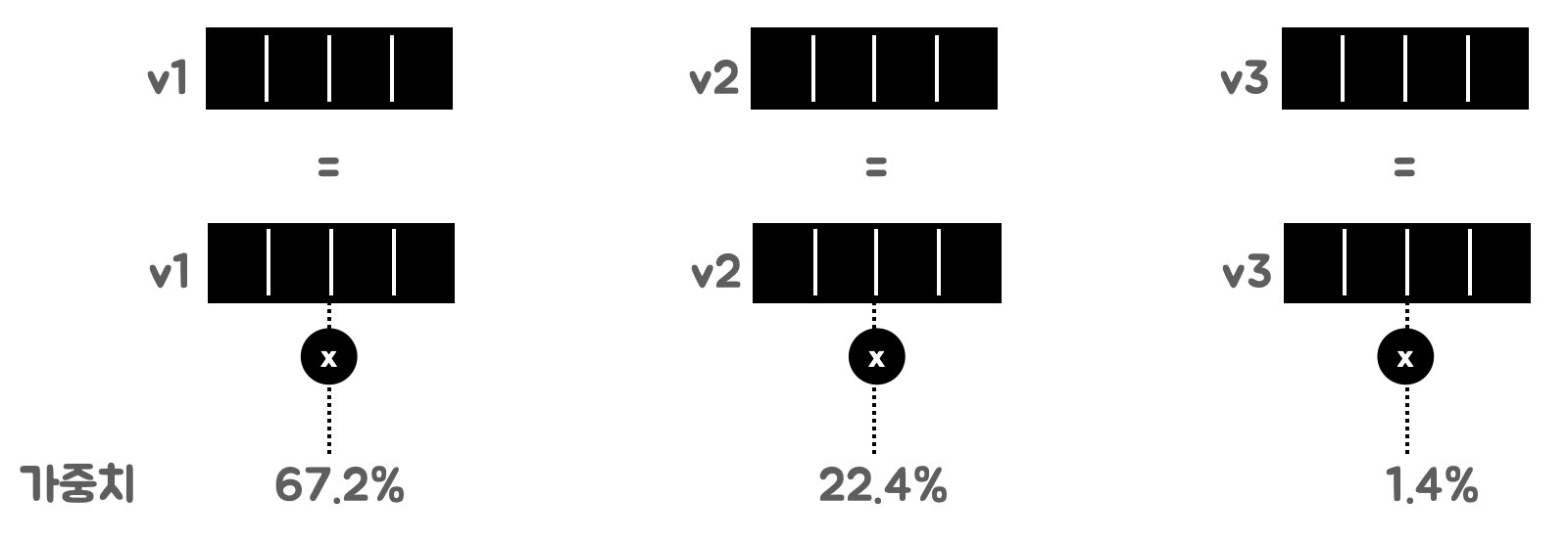 각 Vector를 가중합해서 새로운 단어 벡터생성