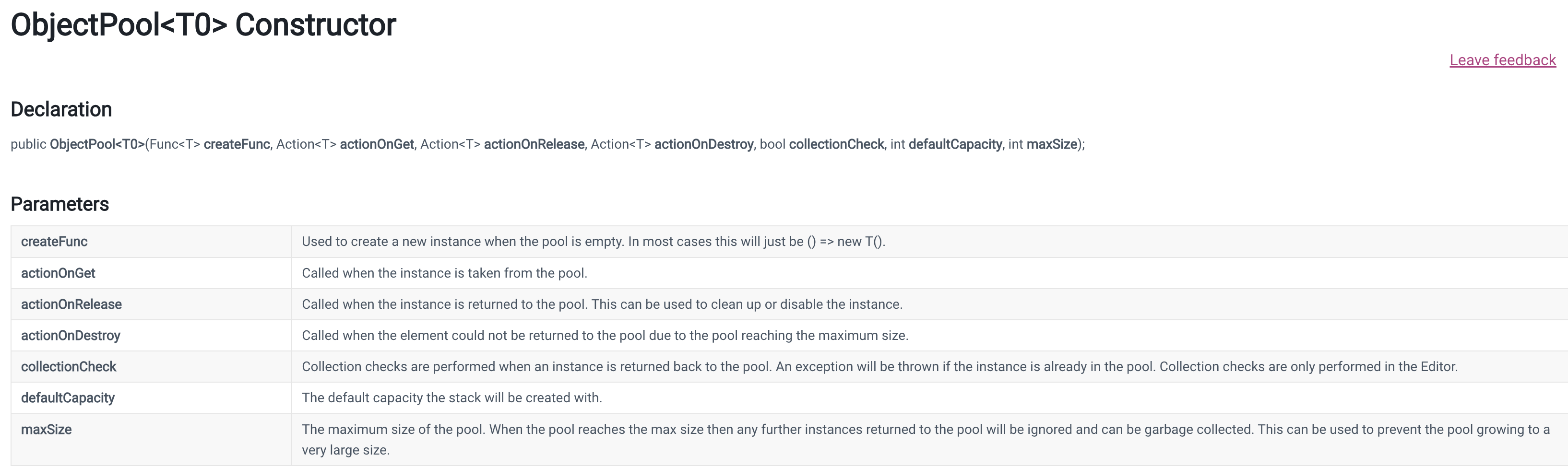 UnityEngine.Pool API