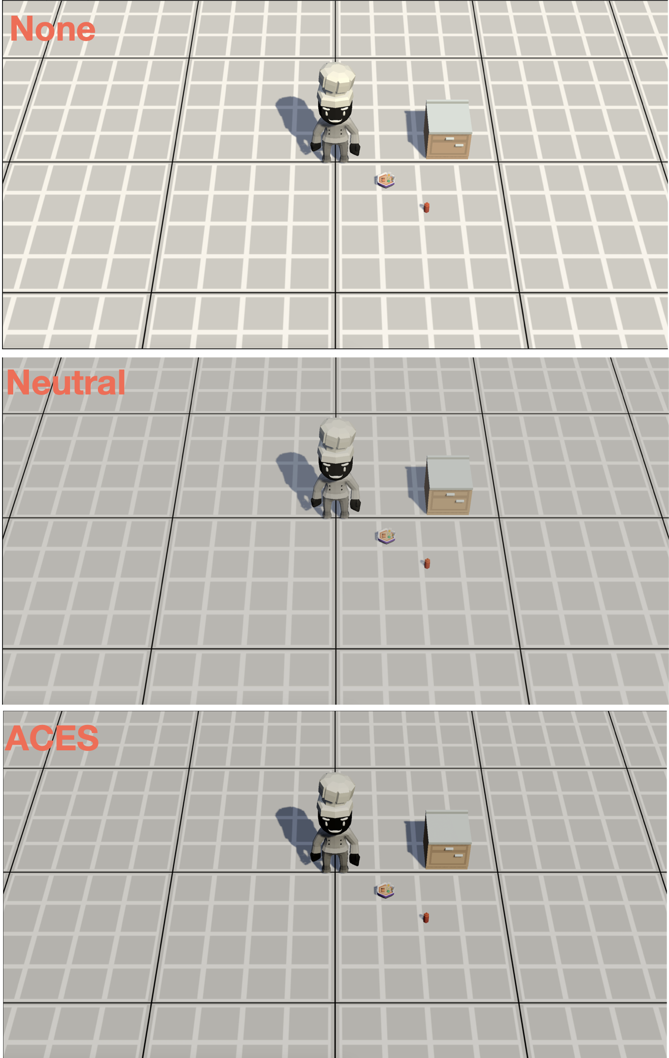 - ACES : 좀 더 영화적인 표현을 위해 사용. Neutral 보다 Contrast가 높으며 실제 색조 및 채도에 영향을 줌